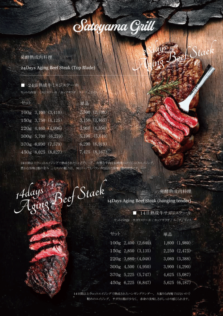 「発酵熟成肉」とは、ミートエポック社と明治大学農学部が共同開発をした日本初の新熟成製造技術「エイジングシート」を用いて作られた熟成肉のこと。ナッツのようなスパイシーで芳醇な香り、熟成香、脂の口溶けは、フレッシュミートとも従来の熟成肉ともまた違う。独特の美味しさと、その安全性が特徴。「発酵熟成肉」は肉質が非常に柔らかく、脂の口溶けが魅力的。そして熟成香といわれる、ミルクやナッツのような芳醇で独特な香りが口の中にリッチな気分が広がります。熟成で得たうまみが肉質の柔らかさの虜になる事間違いなしです。